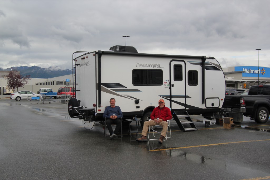 Nous avons donc quitté les pluies diluviennes pour un retour au Yukon. Arrêt à Anchorage. Vous vous souvenez de nos problèmes de logement lors de notre premier arrêt … Nous avons communiqué avec le dernier camping sur la liste. Il est fermé pour une semaine au moins parce que les employés ont la Covid! Nuit au Walmart, sous la pluie. On manque de rien car il ferme à 23h00…