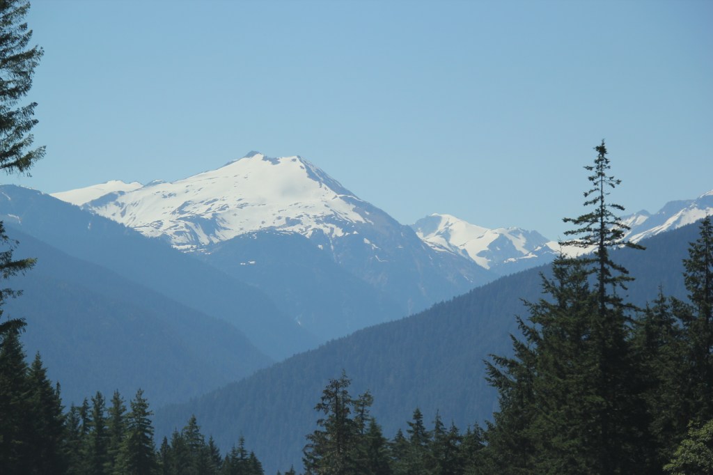 Le lendemain, visite de Lillooet. Petite municipalité mais charmante puis direction Whistler avec les petites routes sinueuses dans les montagnes et surtout les grandes côtes. Des descentes de 13 kilomètres avec des côtes jusqu’à 13%. Les freins et les habiletés de conduite sont mises à l’épreuve mais on a vu bien pire! Avec des vues toujours aussi extraordinaires nous nous rendons à Whistler pour quelques heures puis retour sur la route à la recherche d’un camping. On essaie depuis quelques jours de réserver près de Vancouver et dans la vallée de l’Okanagan mais sans succès. C’est une longue fin de semaine qui s’en vient en plus de la belle température annoncée, des touristes et des vacances des locaux! On y va un soir à la fois. On a finalement trouvé deux terrains adjacents dans un camping à Squamish mais sans aucun service (eau, électricité et égout). C’est mieux que le bord de la route ou le Walmart.