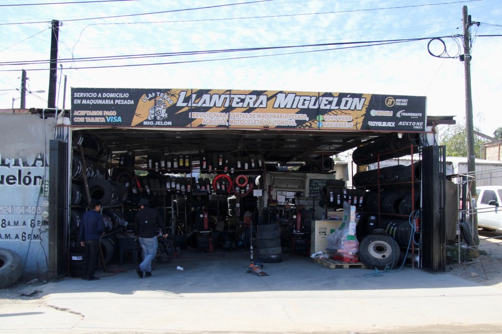 À Los Cabos, comme ailleurs en Baja California, les garages (llanteras) sont à aire ouverte. Moins de danger d’empoisonnement au monoxyde de carbone! En voici deux parmi tant d’autres.