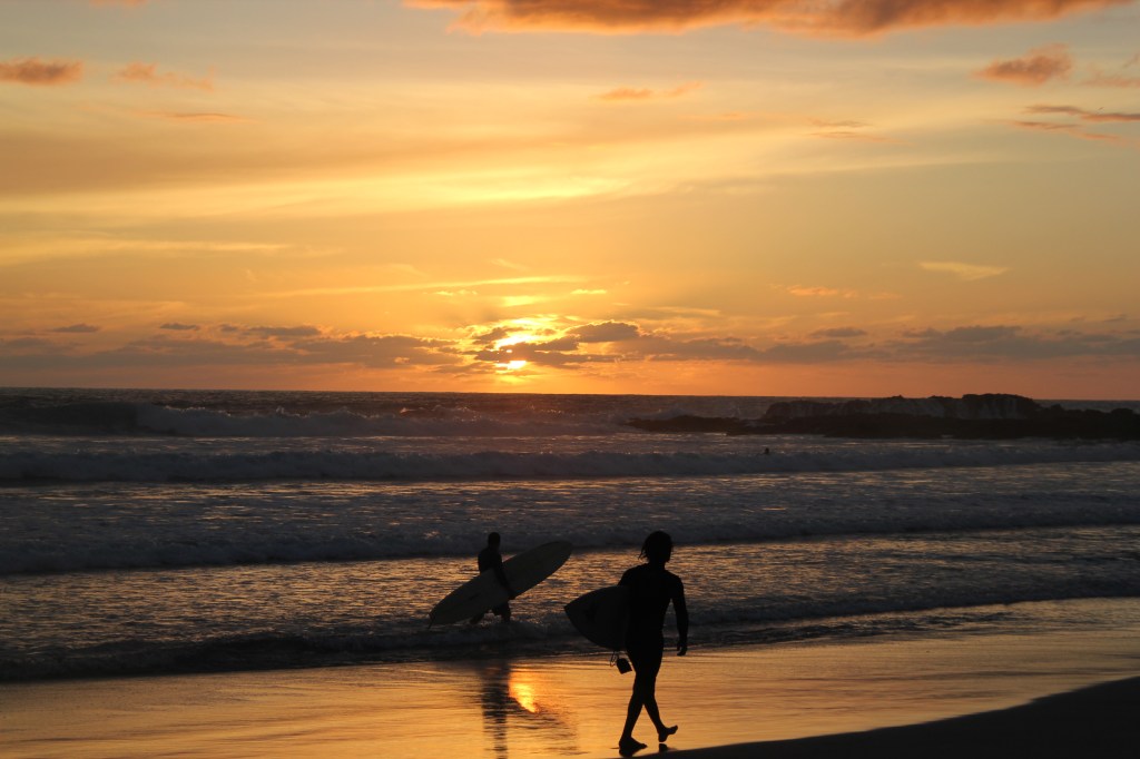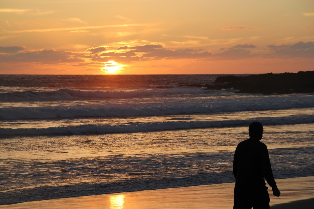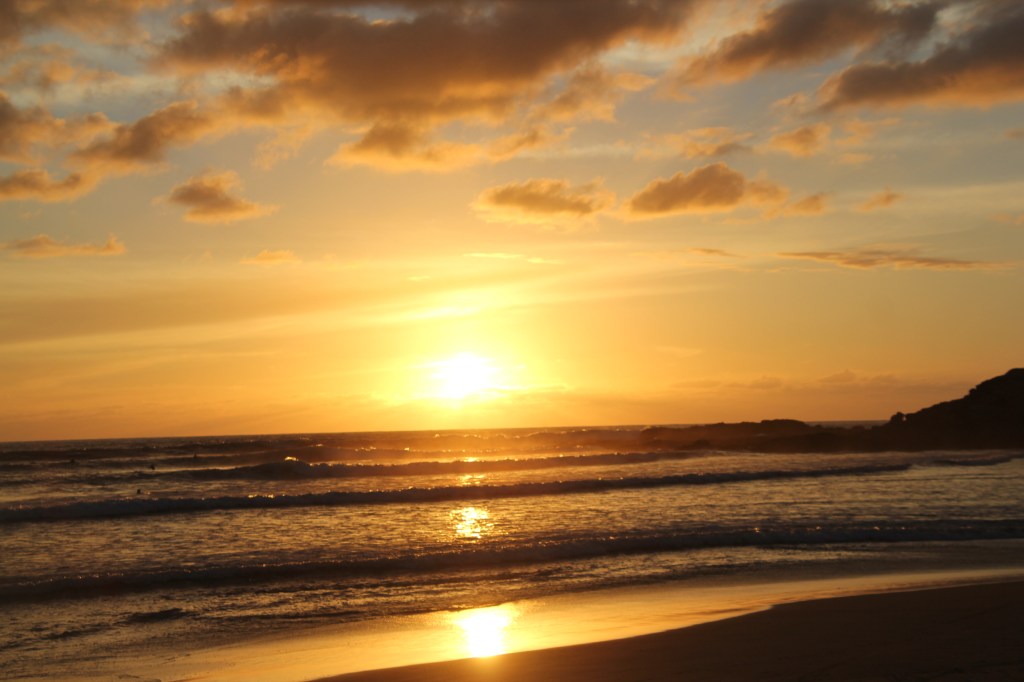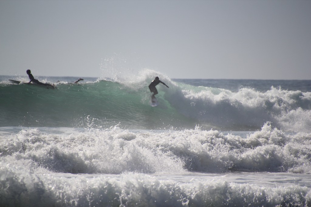 Quelle plage! Nous sommes à 200 mètres à peine. Il y a de grosses vagues qui permettent le surf d’où le nom du camping. L’eau est encore un peu froide mais il y a plusieurs surfeurs dans l’eau. C’est vraiment un beau paysage et le bruit des vagues est impressionnant. Quant au coucher de soleil … fabuleux!