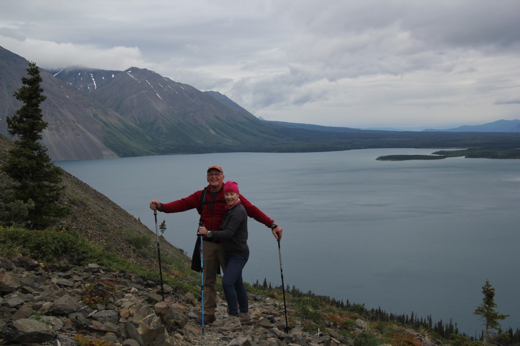Lendemain matin 20 juillet, randonnée avant la pluie sur le sentier King’s Throne. Parcours difficile dans la partie supérieure à la ligne des arbres et surtout difficile à redescendre. La côte est abrupte et le terrain, formé de pierres, est très instable. Chaque pas doit être calculé avec soin. Les maringouins, heureux de voir des touristes, nous accompagnent avec grand entrain. Retour ensuite sous la pluie à Whitehorse pour la troisième fois du voyage.