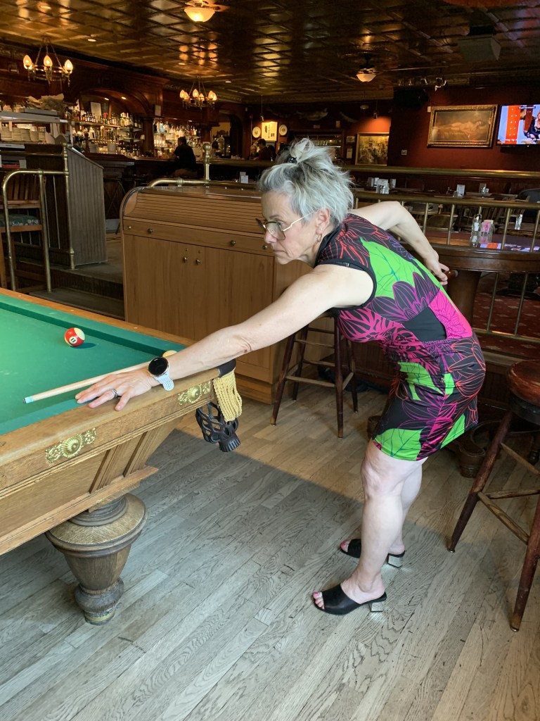 À Fairbanks, la mission fut finalement accomplie avec succès. Les réunions de Micheline ont bien eu lieu. Pendant ce temps, Lyne et Michel ont fait le lavage. On a aussi profité de Fairbanks pour les courses au Costco puis au Wallmart, la visite de la ville, un souper au restaurant sans gluten, recommandé par Amanda et quelques parties de billard sur une table « Brunswick » datant de 1898 et qui a connu la ruée vers l’or à Dawson au Yukon.