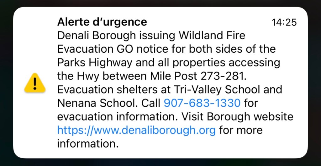 À notre départ de Fairbanks, l’odeur de fumée est plus présente que la veille et le ciel moins clair. Nous nous dirigeons vers le Parc Denali à environ 200km.