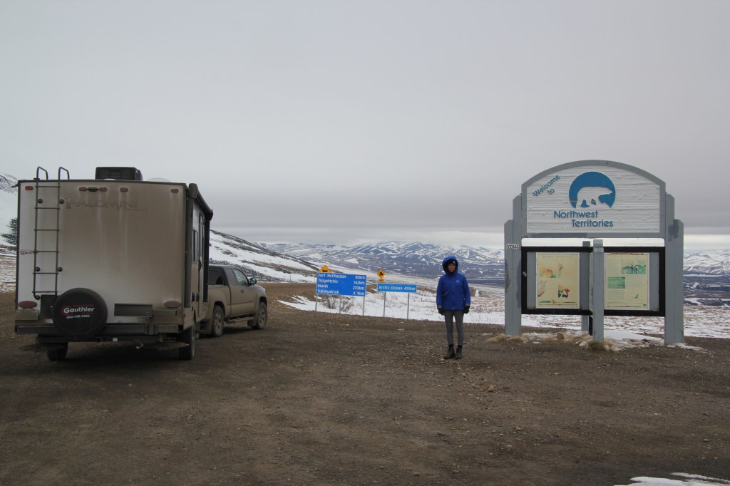 La route était fermée avant-hier à cause d’un blizzard mais sauf quelques endroits, il n’y plus de neige sur la route aujourd’hui. Nous sommes très très prudents. On roule tranquillement en admirant le paysage et en écoutant la musique. Pas de téléphone et de wi-fi depuis le début de la Route de Dempster. Nous sommes maintenant dans les Territoires du Nord-Ouest. Beaucoup de vent et froid! Vive l’été … Nous sommes maintenant arrêtés au premier traversier, celui de Peel River qui n’est pas en opération à cause de l’eau exceptionnellement plus haute cette année. Aux dernières nouvelles, il va ouvrir demain soir. On a du réseau cellulaire mais pas très fort. Nous sommes une dizaine: des campeurs comme Jean-Claude et Lyne, 2 énormes roulottes et nous. 2 personnes sont ici depuis une semaine. Nous évaluerons demain. Pour le moment, on économise l’eau. Tout est sale et boueux, nous y compris … On prend la vie du bon côté et on apprécie vraiment cette belle expérience et nos hommes qui nous conduisent en toute sécurité.