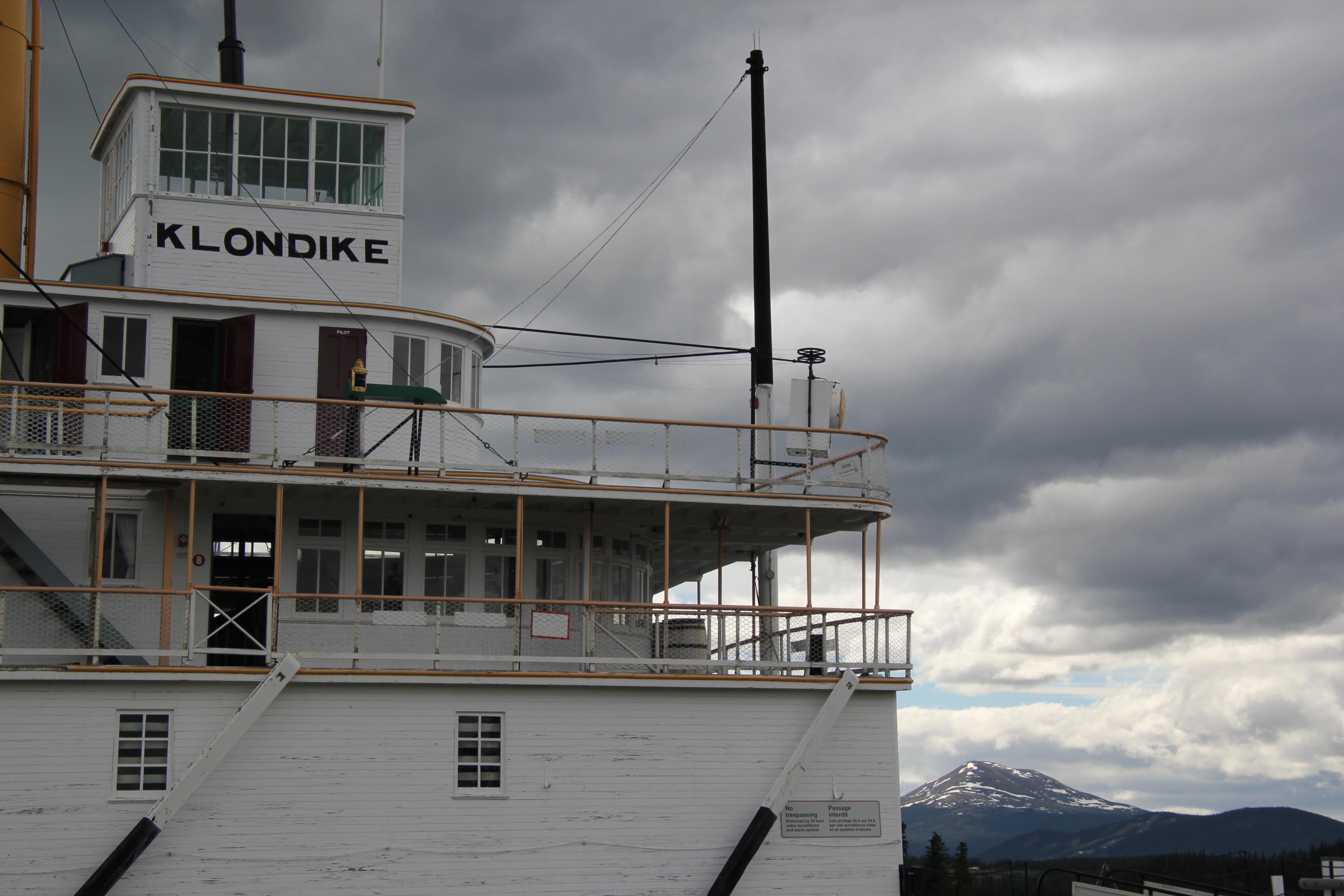 Après le brunch de la fête des Pères, nous sommes allés visiter un bateau à aube, le S.S. Klondike. Ce type de bateau a été utilisé pour ravitailler Dawson et rapporter du minerai de Mayo. Ces bateaux ont navigué sur le fleuve Yukon du début des années 1900 jusqu’à 1950, suite à la construction de la route qui relie Whitehorse à Dawson.
