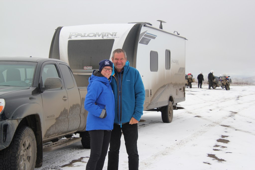 Nous nous sommes rĂ©veillĂ©s sous la neige et avec un pneu de roulotte un peu dĂ©gonflĂ©. Pneu regonflĂ© avec la gĂ©nĂ©ratrice et la pompe de Jean-Claude puis nous sommes partis sur la route plutĂ´t boueuse, par moment. Il neige en altitude mais rien au sol sur la route. ArrĂŞt Ă Eagle Plains (370 kilomètres). Il s’agit du premier arrĂŞt avec de l’essence. Nous en avons profitĂ© pour ajouter de l’air au pneu de la roulotte mais le système de dĂ©tection de la pression nous indique une perte importante de pression. On l’a donc entrĂ© au garage pour une vĂ©rification. Nous avions une vis de 1/2 pouce dans le pneu. RĂ©paration du pneu puis reparti. ArrĂŞt au Cercle arctique au kilomètre 405. Très venteux et super froid mais il fait soleil et on voit bien les montagnes qui nous entourent. C’est vraiment beau, les plaines et les montagnes ensemble. Un paysage que nous n’avons vu nulle part ailleurs au Canada. ArrĂŞt au Camping River Rock (kilomètres 445). On s’est promenĂ© toute la soirĂ©e avec nos rĂ©pulsifs Ă ours car il y avait un grizzly sur la route 500 mètres avant d’arriver. Nous sommes les seuls de tout le camping. On se demande si ça devrait nous allumer une lumière??? Sommes-nous aventuriers ou innocents??? Mais c’est tellement beau …